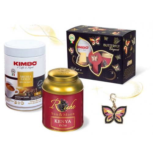 Подарочный набор Butterfly Элегант Кофе Kimbo Gold + Чай Kenya + кулон, 350 г (kastd) в магазинах Ашан