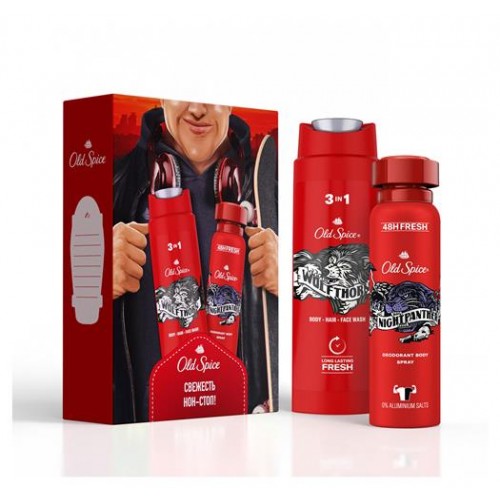 Подарочный набор для мужчин Old Spice, Дезодорант-спрей Nightpanther 150 мл + Гель для душа 3в1 Wolfthorn 250 мл (kastd) в магазинах Ашан