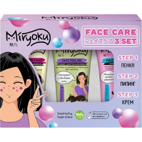 Подарочный набор Miryoku Пенка для умывания 50мл + Пилинг-скатка для лица 50мл + Крем для лица 50мл в магазинах Магнит