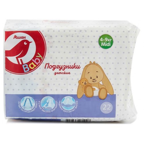 Подгузники АШАН Красная птица midi 3 размер 4-9 кг, 22 шт (kastd) в магазинах Ашан