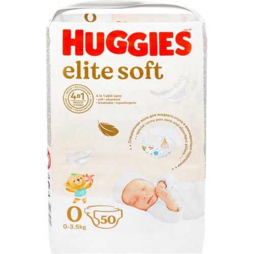 Подгузники детские HUGGIES Elite Soft 0+, до 3,5кг, 50шт в магазинах Лента