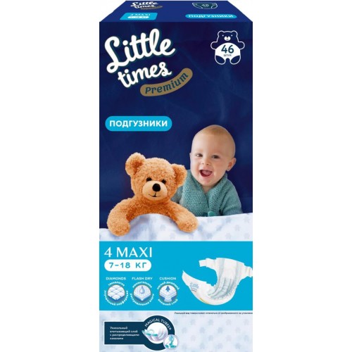 Подгузники детские LITTLE TIMES Premium Maxi 7–18кг, 46шт в магазинах Лента