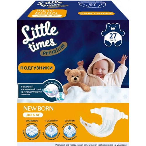 Подгузники детские LITTLE TIMES Premium New Born 0–5кг, 27шт в магазинах Лента
