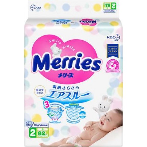 Подгузники для детей Merries размер S 4-8кг 82/88шт в магазинах Магнит