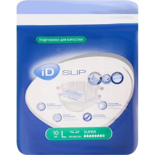 Подгузники для взрослых ID Slip L, 10шт в магазинах Лента