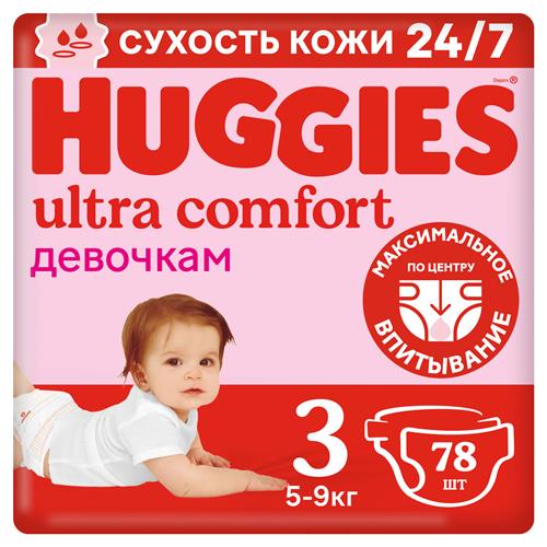 Подгузники для девочек Huggies Ultra Comfort 3 5-9 кг, 78 шт (kastd) в магазинах Ашан