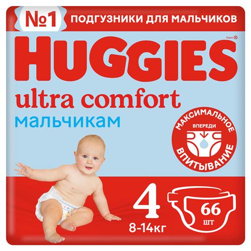 Подгузники для мальчиков Huggies Ultra Comfort 4 8-14 кг, 66 шт (kastd) в магазинах Ашан