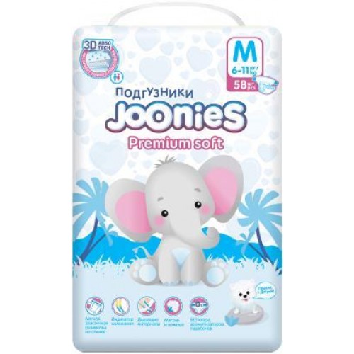 Подгузники Joonies Premium Soft M 6-11 кг 58шт в магазинах Магнит