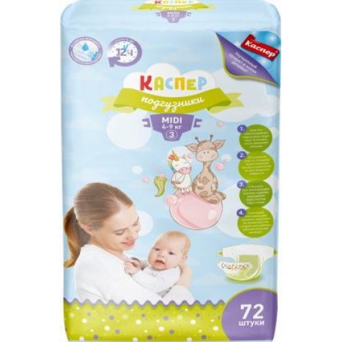 Подгузники Каспер 3 Midi идеально подходят для малышей весом от 4 до 9 кг и станут отличным выбором для заботливых родителей, ценящих качество, надежность и безопасность.