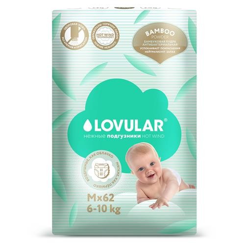 Подгузники Lovular Hot Wind Bamboo Powder M 6-10 кг, 62 шт (kastd) в магазинах Ашан