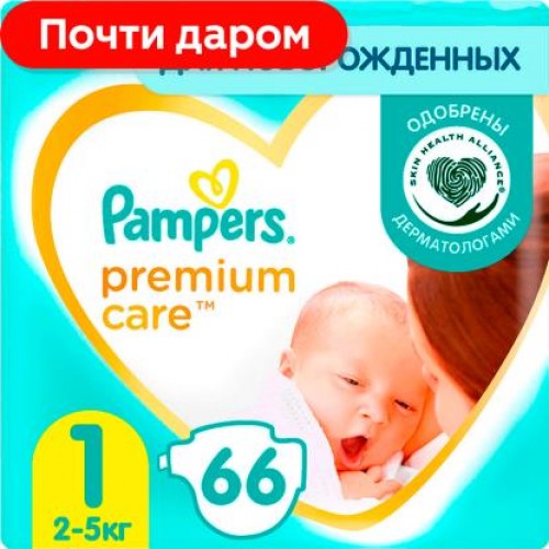 Подгузники Pampers Premium Care размер 1 2-5кг 72/66шт в ассортименте в магазинах Магнит
