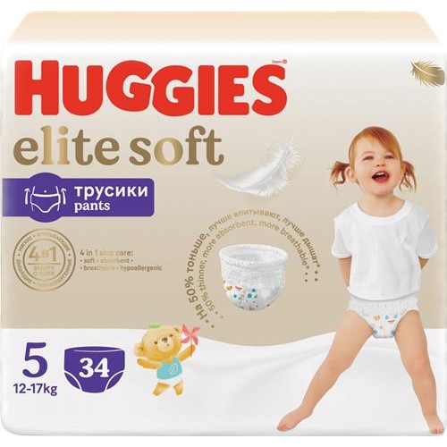 Подгузники-трусики детские HUGGIES Elite Soft 5 12–17кг, 34шт в магазинах Лента