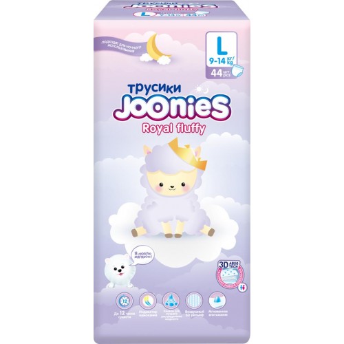 Подгузники-трусики детские JOONIES Royal Fluffy L 9–14кг, 44шт в магазинах Лента