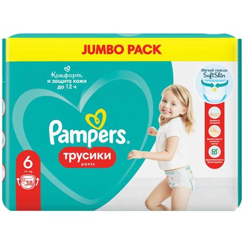 Подгузники-трусики для мальчиков и девочек PAMPERS Pants Jumbo Extra Large 15+кг, 38шт в магазинах Лента