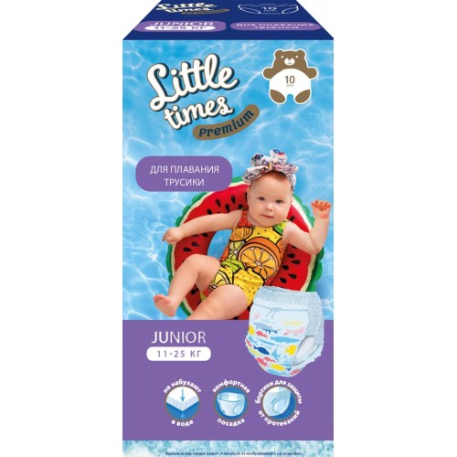 Подгузники-трусики для плавания Little Times L – идеальный выбор для защиты малыша во время плавания в бассейне. Специальная разработка обеспечивает максимальную безопасность от протекания, благодаря особому впитывающему слою, который не разбухает и гарантирует комфорт при использовании.
