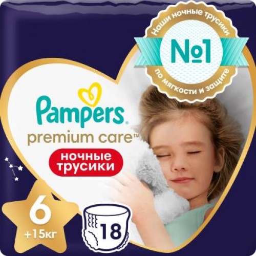 Подгузники-трусики Pampers Premium Care Extra Large ночные размер 6 15+ 18шт в магазинах Магнит