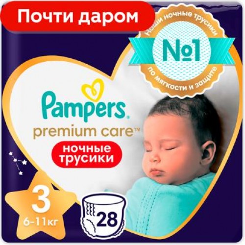 Подгузники-трусики Pampers Premium Midi ночные 3 6-11кг 28шт в магазинах Магнит