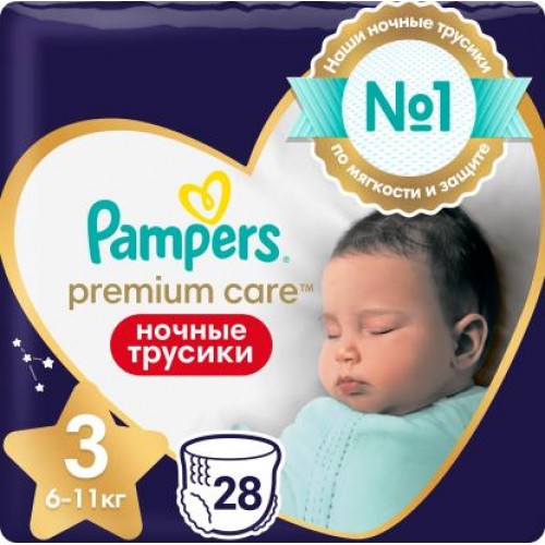 Подгузники-трусики Pampers Premium Midi ночные размер 3 6-11кг 28шт в магазинах Магнит