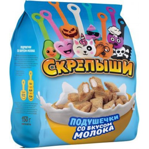 Подушечки Скрепыши с молочным вкусом – это вкусное и ароматное кондитерское изделие, изготовленное в виде небольших подушечек. Масса продукта составляет 150 грамм.