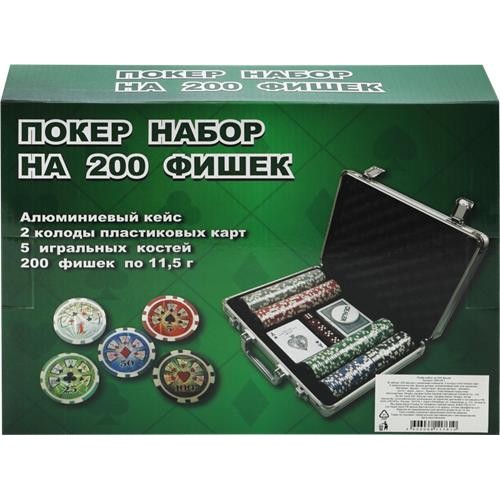 Покер-набор в кейсе 200 фишек + пластиковые карты