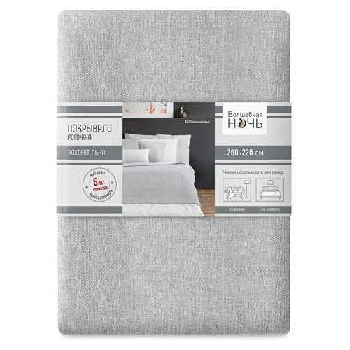 Покрывало Волшебная Ночь пепельно-серое, 200х220 см (kastd) в магазинах Ашан