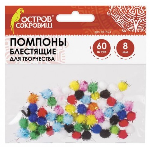 Помпоны для творчества Остров Сокровищ блестящие 10 цветов 8 мм, 60 шт (kastd) в магазинах Ашан