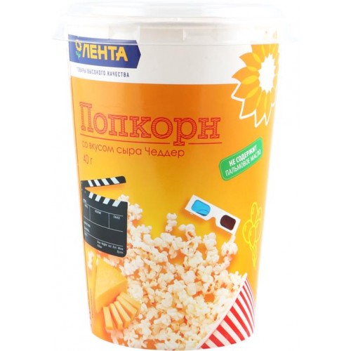 Попкорн ЛЕНТА со вкусом сыра чеддер, без пальмового масла, 40г в магазинах Лента