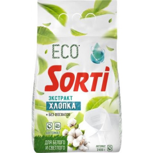 Порошок стиральный Sorti Экстракт Хлопка автомат, 2,4 кг - это идеальный выбор для тех, кто ценит чистоту, свежесть и экологичность. Благодаря формуле с экстрактом хлопка, порошок бережно относится к тканям, удаляя даже самые сложные загрязнения.