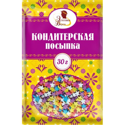 Посыпка кондитерская ЭСТЕТИКА ВКУСА фигурная - идеальное решение для украшения вашей домашней выпечки и десертов! Этот качественный продукт, доступный только в , создан для создания незабываемого праздничного образа ваших кулинарных шедевров.