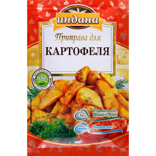 Приправа для картофеля ИНДАНА - это ароматная комбинация натуральных трав и пряностей для создания неповторимого вкуса ваших любимых блюд. Обогатит и придаст особую нотку печеному, жареному картофелю, картофельным оладушкам, котлетам и супам. Эта приправа также прекрасно подойдет для приготовления фарша. В действует специальная скидка по карте покупателя, что делает эту приправу еще более привлекательной для покупки. Готовьте с удовольствием и радуйте своих близких новыми кулинарными шедеврами, используя приправу для картофеля ИНДАНА.