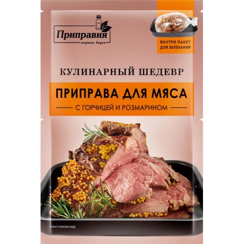 Приправа PRIPRAVKA Кулинарный шедевр Сочная буженина, с французской горчицей и розмарином, 30г в магазинах Лента