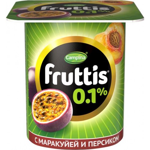 Продукт йогуртный FRUTTIS Легкий Персик, маракуйя/Вишня 0,1%, без змж, 110г в магазинах Лента