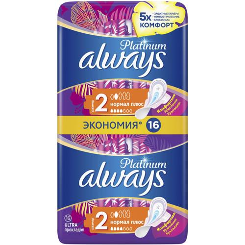 Прокладки Always Platinum ultra normal plus, 16шт в магазинах Перекресток