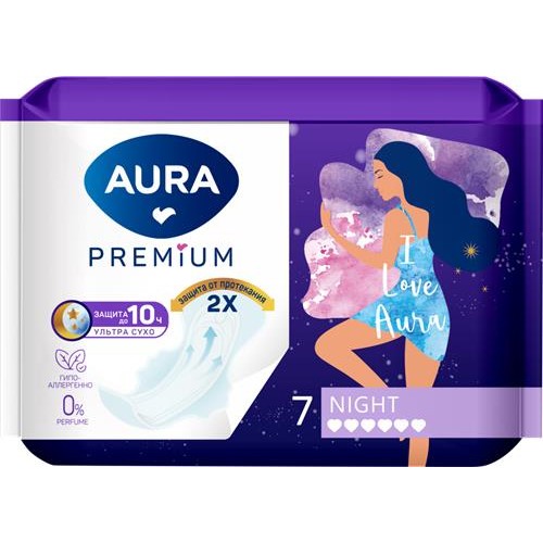 Прокладки AURA Premium Night, 7шт в магазинах Лента