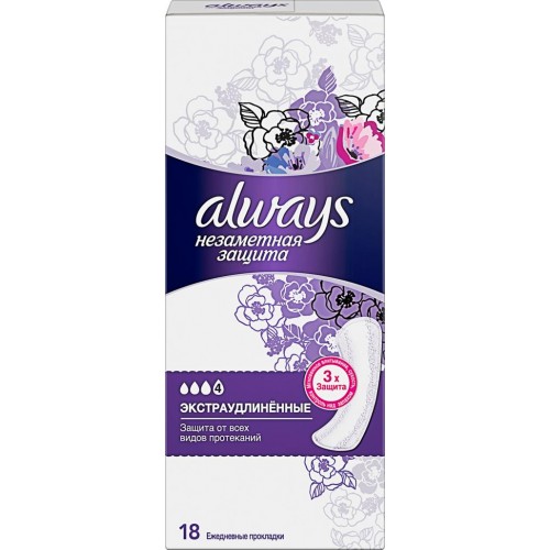 Прокладки ежедневные ALWAYS Незаметная защита Экстраудлиненные, ароматизированные, 18шт в магазинах Лента