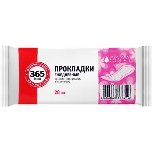 Прокладки ежедневные гигиенические 365 ДНЕЙ впитывающие, 20шт в магазинах Лента