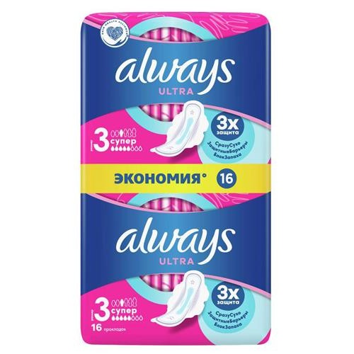 Прокладки гигиенические Always Ultra Super Plus ультратонкие размер 3, 16 шт (kastd) в магазинах Ашан