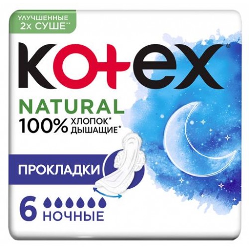 Прокладки гигиенические Kotex Natural ночные, 6 шт (kastd) в магазинах Ашан