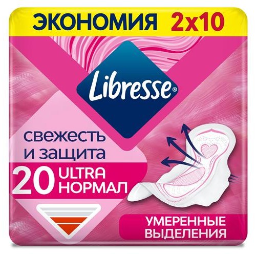 Прокладки гигиенические Libresse Ultra Нормал с мягкой поверхностью, 20 шт (kastd) в магазинах Ашан