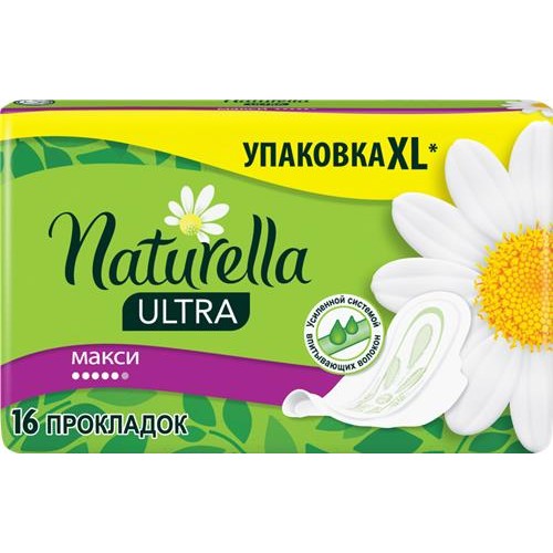 Мягкие гигиенические прокладки NATURELLA Ultra Maxi Ромашка с крылышками для надежной фиксации и дополнительной защиты кожи в интимной зоне при обильных выделениях в дневное время.