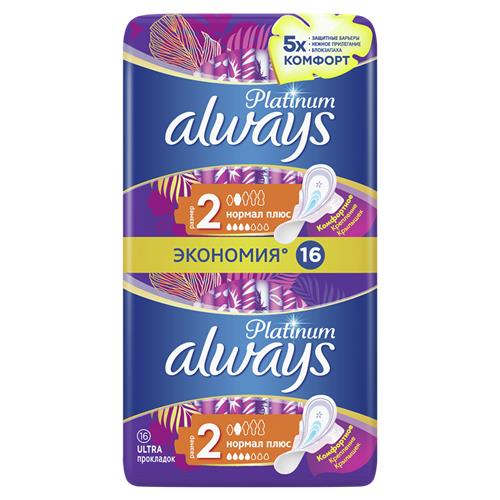 Прокладки ОЛВЕЙЗ Платинум нормал плюс, ультратонкие, 16шт в магазинах Авоська