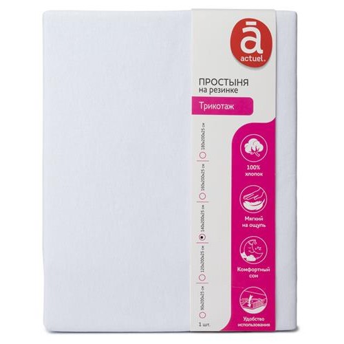 Простыня Actuel трикотажная на резинке белая, 140х200х25 см (kastd) в магазинах Ашан
