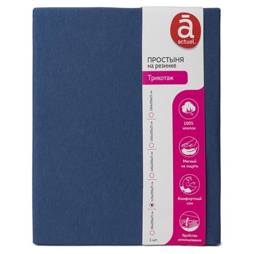 Простыня Actuel трикотажная на резинке индиго, 120х200х25 см (kastd) в магазинах Ашан