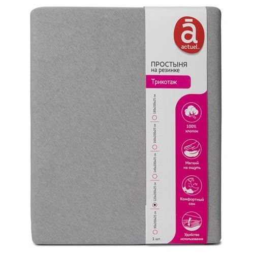 Простыня Actuel трикотажная на резинке серая, 120х200х25 см (kastd) в магазинах Ашан