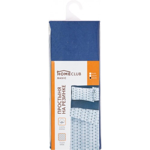 Простыня на резинке HOMECLUB 160/180х200см, синяя, бязь, хлопок в магазинах Лента