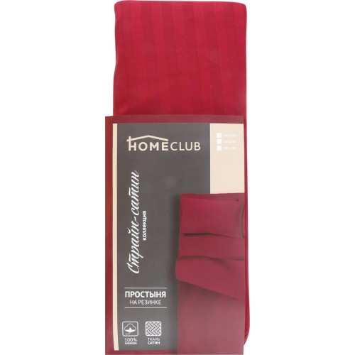 Простыня на резинке HOMECLUB 200х200см, бордовая, страйп-сатин в магазинах Лента