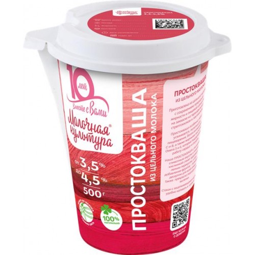 Простокваша МОЛОЧНАЯ КУЛЬТУРА 3,5–4,5%, без змж, 500г в магазинах Лента