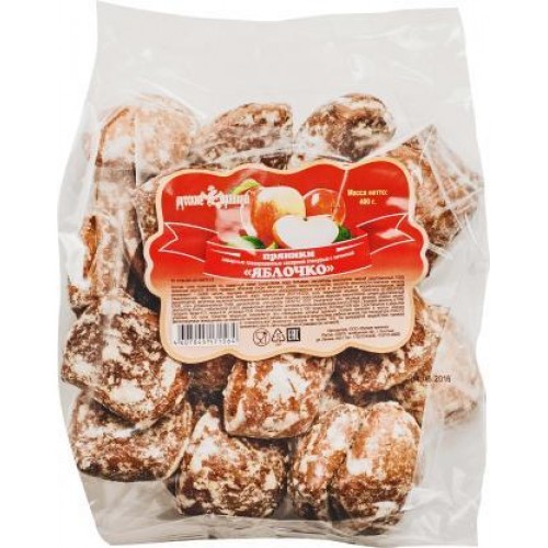 Пряники «Русские пряники Яблочко» с яблочной начинкой - это вкусное и популярное лакомство, которое любят как дети, так и взрослые. Поставляется в упаковках по 350 грамм. При изготовлении используются только натуральные ингредиенты: пшеничная и ржаная мука, подсолнечное масло, сахарный сироп, вода и сухое молоко. Начинка из яблочного пюре содержит пектин в качестве загустителя. Молотые специи, такие как имбирь, гвоздика, корица, перец и кориандр, придают пряникам неповторимый аромат и вкус. Благодаря высокой калорийности, пряники «Русские пряники Яблочко» идеально подходят для завтрака, обеденного перерыва или перекуса между уроками. Запивать пряники можно молоком, чаем или свежим соком.