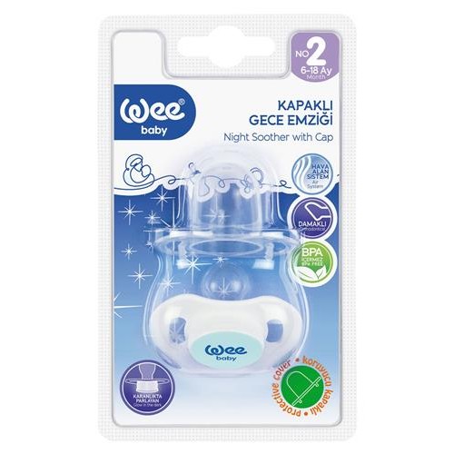 Пустышка ортодонтическая Wee Baby ночная силиконовая с колпачком от 6 до 18 мес., 1 шт (kastd) в магазинах Ашан
