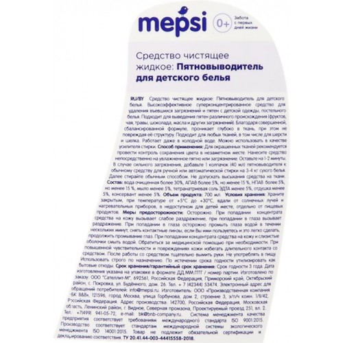 Пятновыводитель для детской одежды MEPSI, 700мл в магазинах Лента